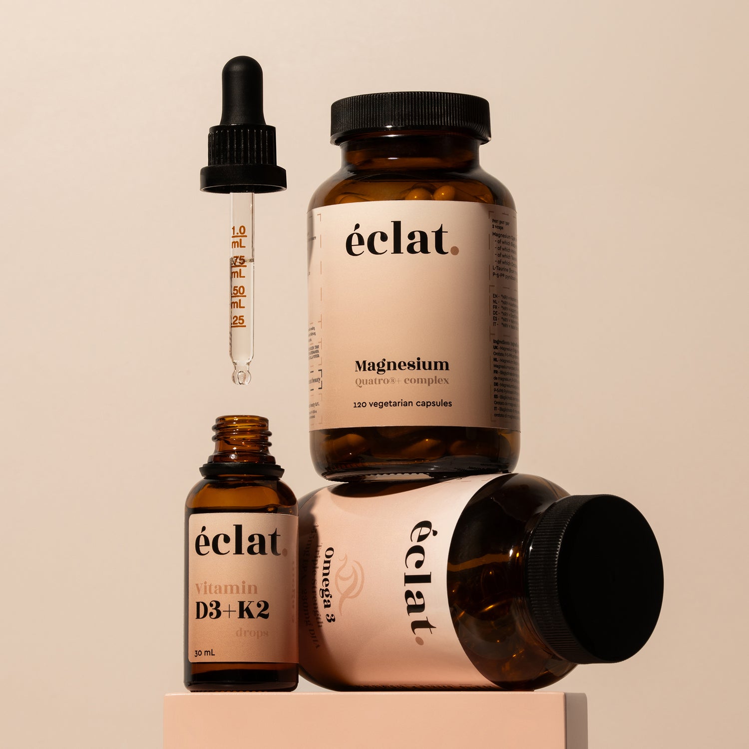 ✔ Vitamine D3 (cholecalciferol) – afkomstig uit dierlijke producten en de vorm die het lichaam zelf aanmaakt onder invloed van zonlicht.